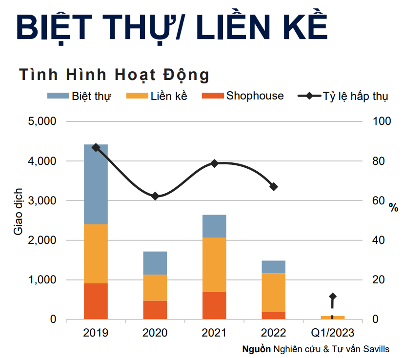 Thị trường biệt thự trong quý đầu tiên khá ảm đạm với nguồn cung bị thu hẹp, với đến 27% nguồn cung sơ cấp phải tạm đóng bảng hàng để các chủ đầu tư sử dụng bất động sản cho việc thanh toán trái phiếu hoặc đang điều chỉnh lại giá.