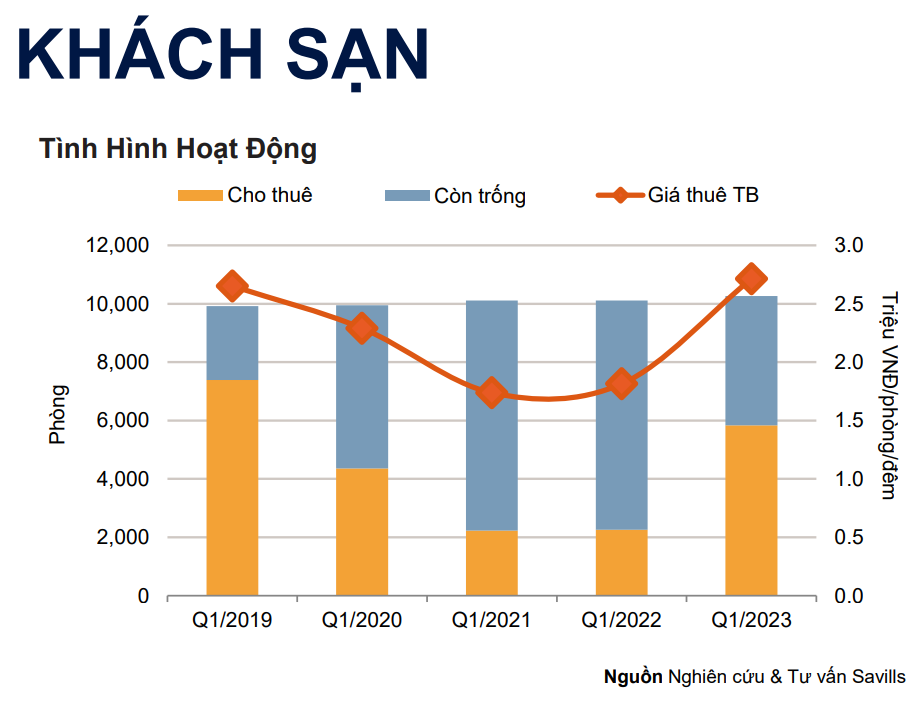 Trong bối cảnh ngành du lịch thành phố tiếp tục cho thấy tín hiệu phục hồi tích cực, tình hình hoạt động của thị trường khách sạn cũng tỏ ra khả quan. Nguồn cung đạt 10.260 phòng từ 17 khách sạn 5 sao, 18 khách sạn 4 sao và 31 khách sạn 3 sao, tăng 1% theo quý và theo năm. Khách sạn 5 sao Hilton Hà Nội Opera đóng cửa để đổi thương hiệu và sẽ mở cửa lại với tên gọi Waldorf Astoria vào năm 2025. Khách sạn 4 sao Movenpick Hà Nội đóng cửa để cải tạo.