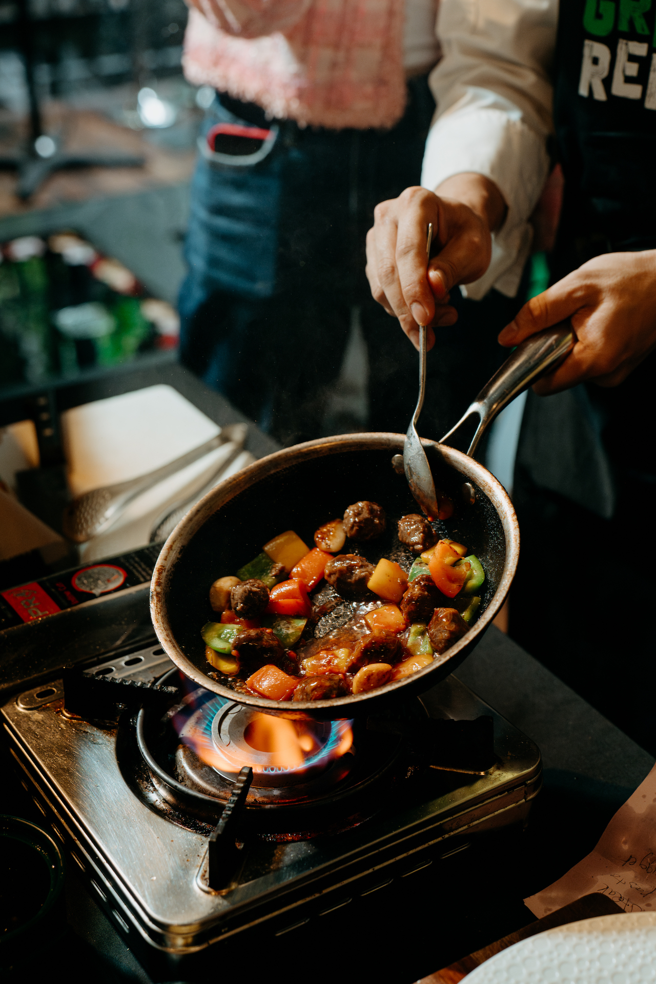 Tại sự kiện, bếp trưởng Sakal Phoeng đã mang đến cho thực khách một màn trình diễn ẩm thực, cùng với việc trải nghiệm các món ăn độc quyền với sản phẩm thịt thực vật Green Rebel mang hương vị bò và gà.