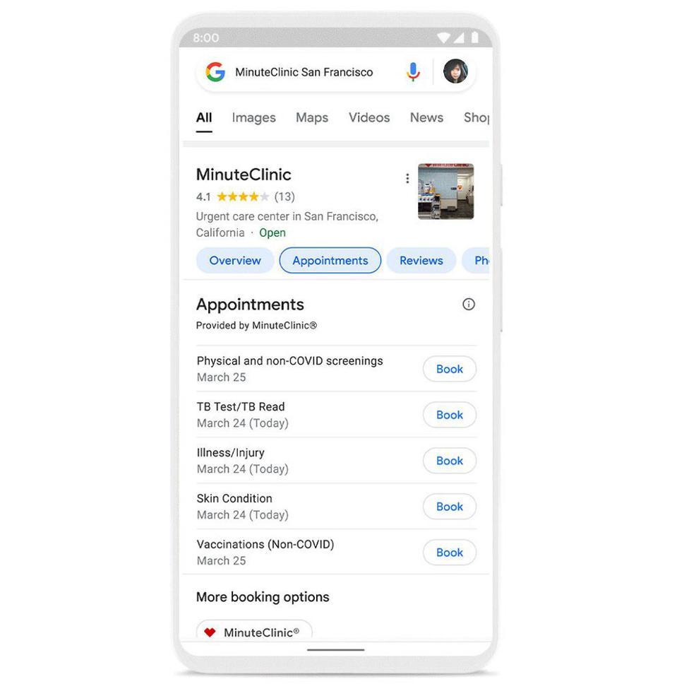 Trong bản cập nhật sắp tới, Google sẽ cho phép người dùng duyệt qua lịch làm việc của các văn phòng y tế và đặt lịch hẹn trực tiếp thông qua khung tìm kiếm.