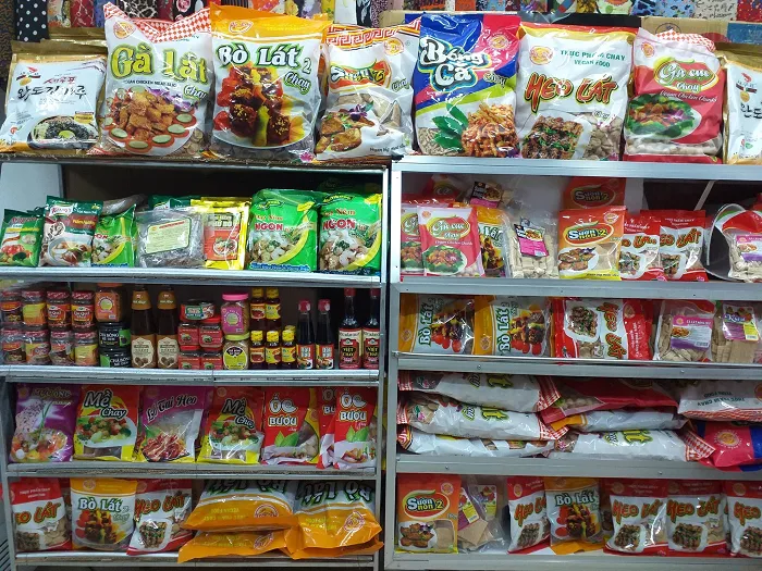 Trên thị trường, các nhà hàng, siêu thị, hay hội nhóm mua bán trên mạng xã hội hiện cung cấp, rao bán những loại thực phẩm chay đa dạng, đóng gói đẹp mắt, tiện lợi cho việc chế biến tại nhà như: nem, chả giò, thịt từ chân nấm, đậu hũ non, há cảo, cá và bò viên nấm… Thực phẩm mặn có gì thì thực phẩm chay cũng có các món tương tự nên không kém phần đặc sắc và ngon miệng. Gần đến lễ Phật Đản, thị trường thực phẩm chay sôi động từng ngày, sức tiêu thụ các mặt hàng chay tăng mạnh và giá cũng không thay đổi so với ngày thường.