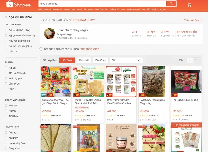 Trên các trang thương mại điện tử Shopee, Chaysach… trưng bày các sản phẩm chay truyền thống như nem chay, chả lụa chay Liên Tâm, Chả quế chay Liên Tâm thuần chay, chả cá chay Liên Tâm giá dao động từ 57.000 – 89.000 đồng/gói 500 gram; hộp bánh bao chay, bánh chưng, bánh giò hộp 6 chiếc giá 89.000-95.000 đồng/gói; giò nạc, giò bò, giò nấm, giò thủ chay, chả giò xốp chay đặc biệt từ 80.000 – 110.000 đồng/kg; cá, tôm chay dao động từ 150.000 – 250.000 đồng/kg… Rong biển, chà bông (heo, gà, bò, chà bông bí đỏ), khổ qua sấy, cơm cháy, cơm gạo lứt sấy… giá khoảng 30.000-70.000 đồng/gói, một số sản phẩm khô được người tiêu dùng yêu thích như sườn non, gà lát, bong bóng cá, thịt bò,… có giá từ 99.000 – 160.000 ngàn đồng/gói.