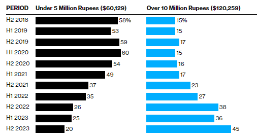 Xu hướng kinh doanh trong thời gian gần đây cho thấy sự thay đổi đáng kể trong thành phần giới thượng lưu Ấn Độ. Amit Goyal, giám đốc điều hành của India Sotheby’s International Realty, từng chủ yếu làm việc với các khách hàng trong giới công nghiệp truyền thống, nay ghi nhận người mua nhà trung bình ở Ấn Độ đang có xu hướng là doanh nhân, chuyên gia ngân hàng, luật sư hoặc nhà tư vấn. Công ty tư vấn bất động sản này quản lý các dự án cao cấp có giá trị tối thiểu khoảng 50 triệu rupee (tương đương 601.296 USD).