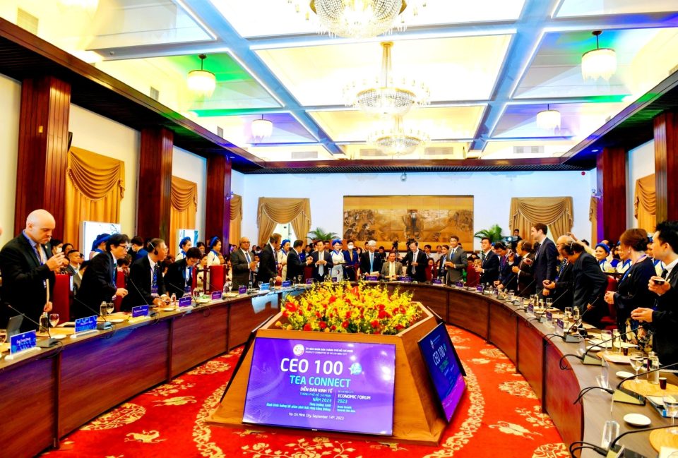 Chiều 14/9, tại TP.HCM đã diễn ra “CEO 100 Tea Connect” – chương trình gặp gỡ 100 lãnh đạo doanh nghiệp, tổ chức, địa phương trong và ngoài nước thông qua chiêu đãi trà đặc sản, thuộc khuôn khổ “Diễn đàn Kinh tế TP HCM 2023”. Đây là lần đầu tiên chính quyền TP.HCM tổ chức gặp gỡ, kết nối doanh nghiệp theo sáng kiến “tiệc trà”.