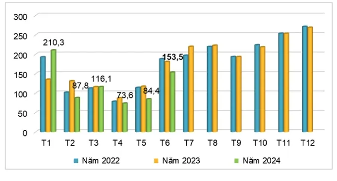 Lũy kế 6 tháng đầu năm 2024, xuất khẩu cao su đạt 726,65 nghìn tấn, trị giá trên 1,1 tỷ USD, giảm 5,2% về lượng, nhưng tăng 5,5% về trị giá so với cùng kỳ năm 2023. Giá cao su xuất khẩu nửa đầu năm nay bình quân đạt 1.525 USD/tấn, tăng 11% so với cùng kỳ năm 2023.
